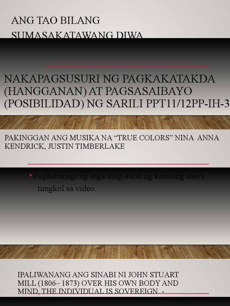 ANG TAO BILANG MALAYA Setyembre 4-8 2017. Isang persona o tao na nakabukod mula sa iba pang mga persona o mga tao at. Bilang tao may mga pangangailangan tayo upang mabuhay.
